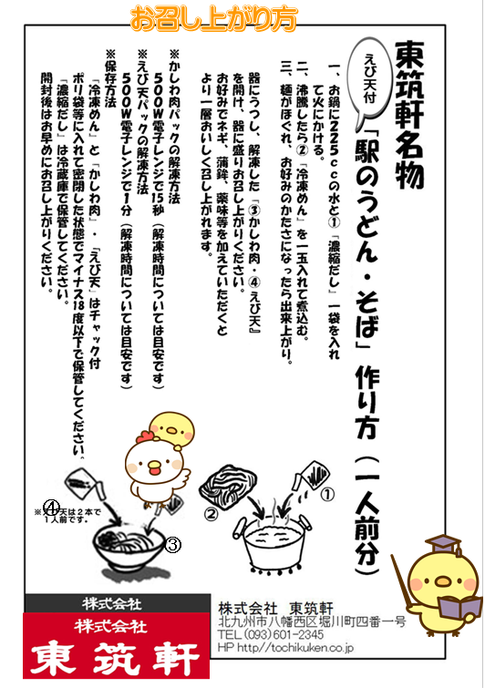 調理は簡単!ご家庭で簡単に「東筑軒のかしわそば」をお楽しみ頂けます。