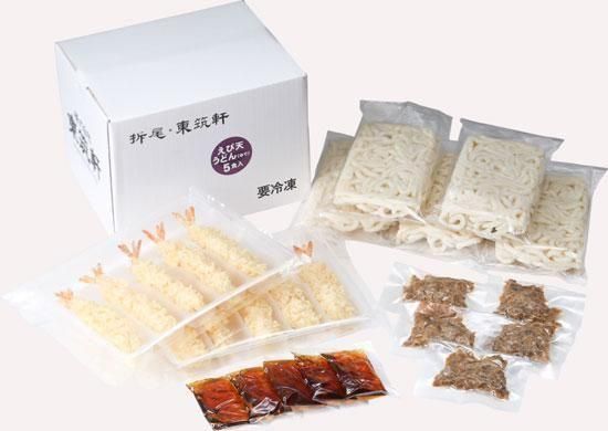 | 5食入[冷凍ゆで麺220g×5、かしわ肉20g×5、だし25ml×5、えび天×10] | |